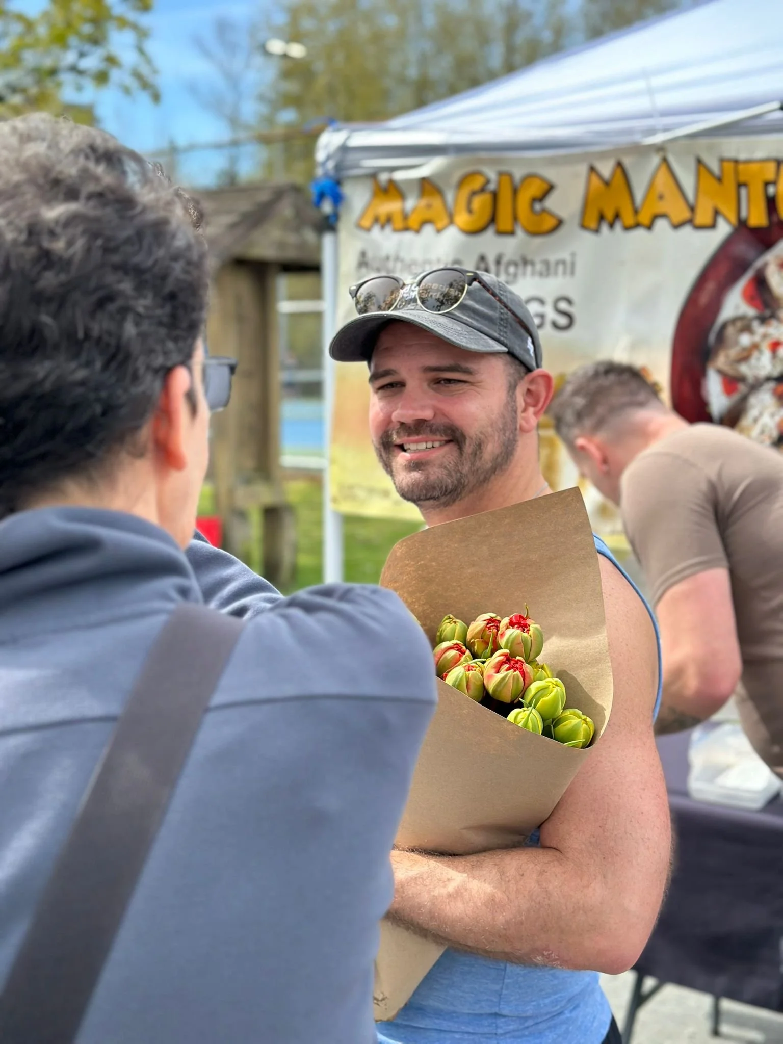 That's it. No errand list, no grocery store fluorescent lights, no self-checkout machine telling you to place your item in the bagging area. Just a table, a person who grew the thing, and a conversation about how to cook it.